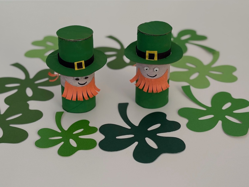 Kids can make leprechauns with a toilet paper roll, construction paper, and paint.
