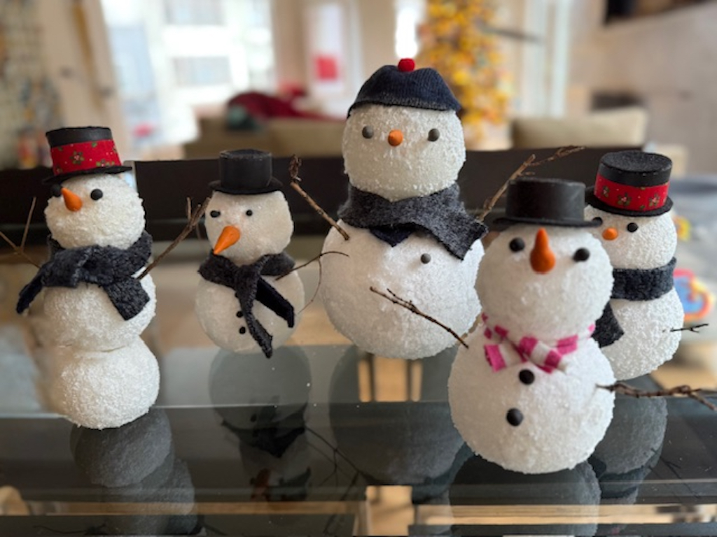Learn how to make snowmen with styrofoam balls and epsom salts, Grouped on the dinner table, these adorable guys make a festive holiday centerpiece. The grandkids and I crafted them on a winter afternoon last year.